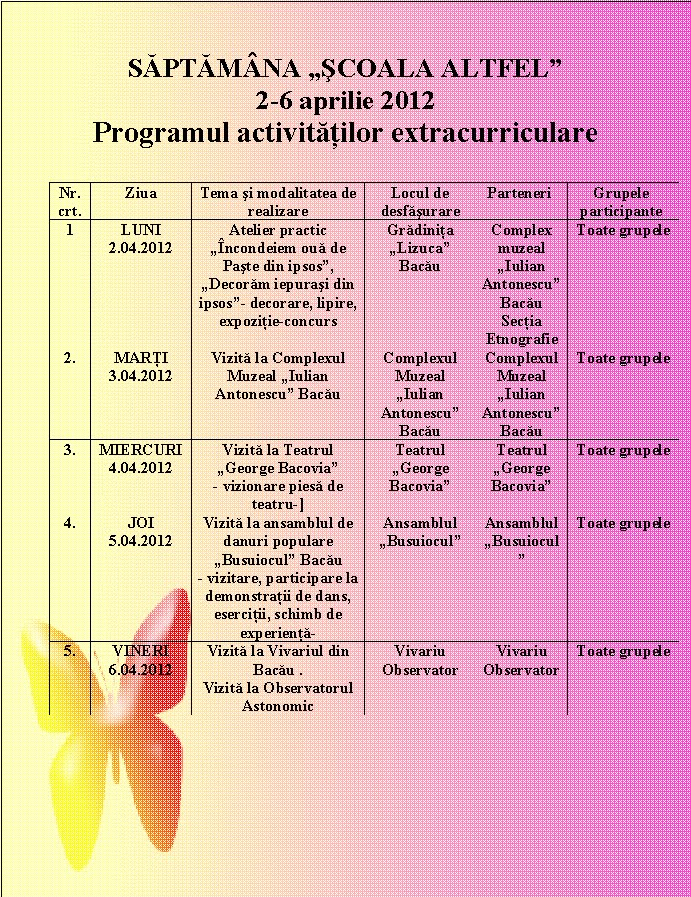 Blog Oficial Grădiniţa Cu Program Prelungit Lizuca Bacău Scoala Altfel Saptamana 2 6 Aprilie 2012 Dedicata Activitatilor Extracurriculare Si Extrascolare