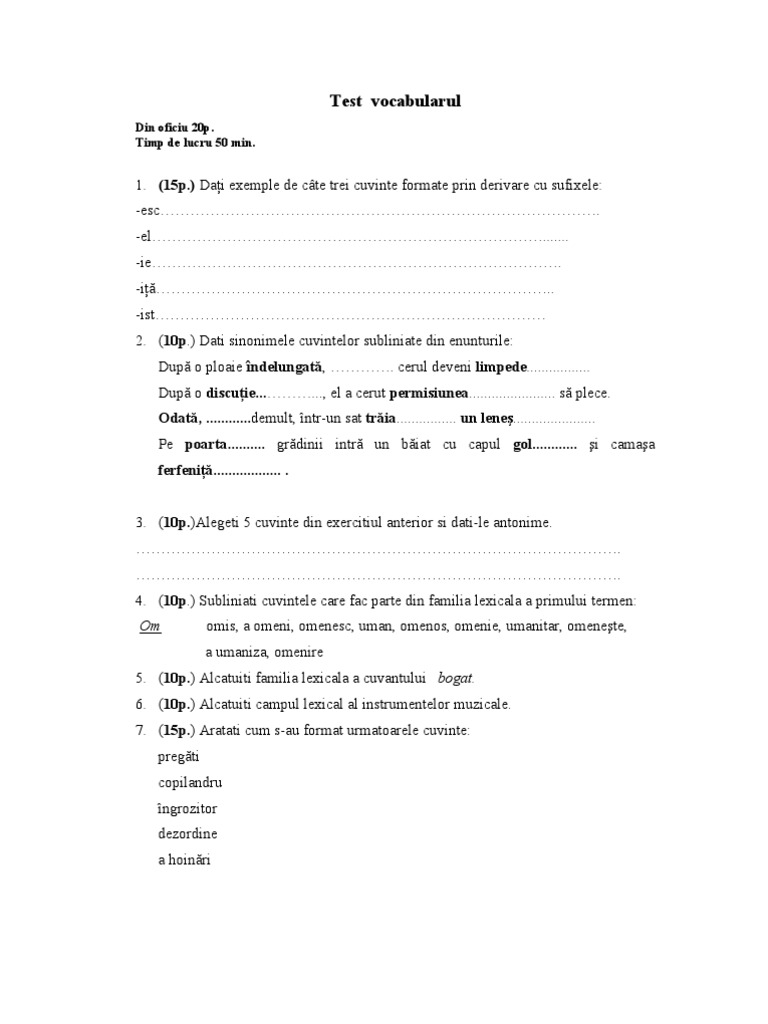Test Vocabularul V