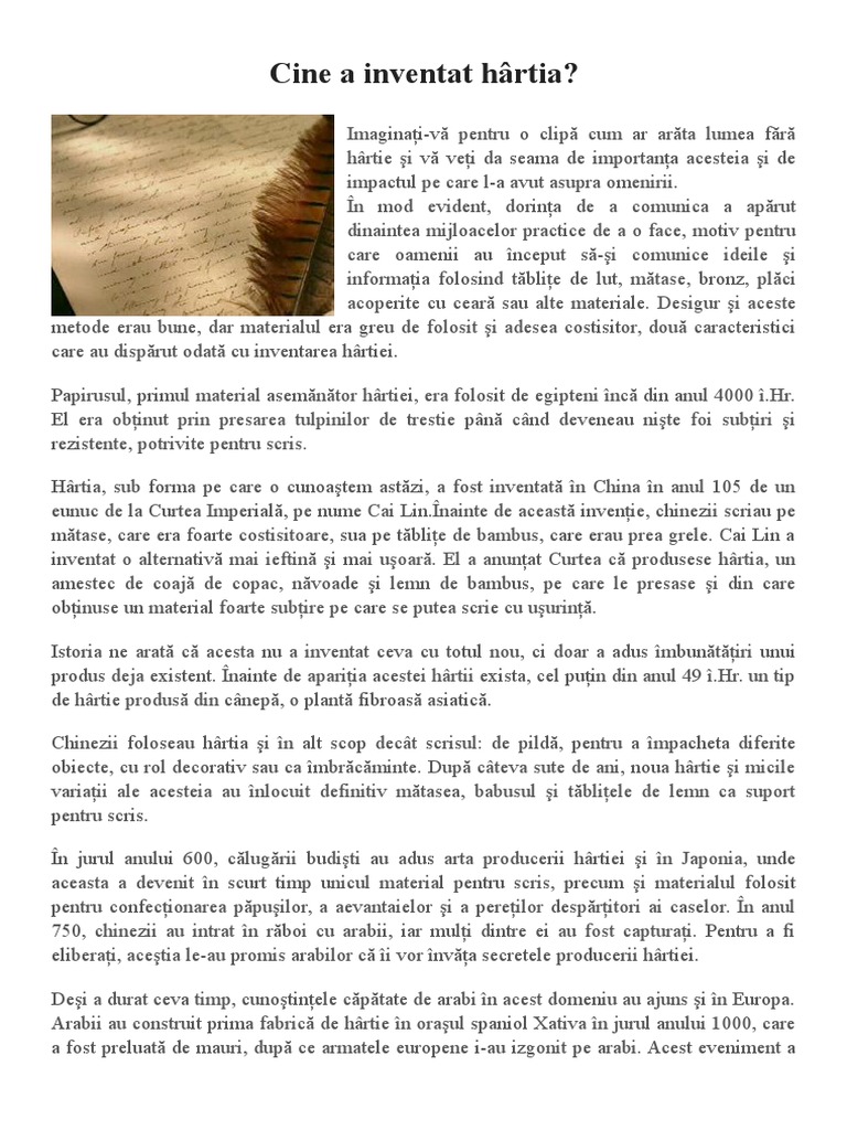 Cine A Inventat Hartia Inceputul și Viitorul Scrisului