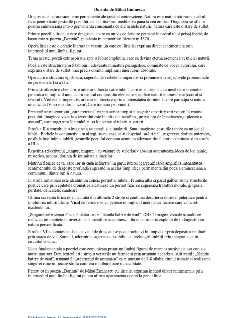 Dorinta De M Eminescu Comentariu Pe Strofe Wattpad