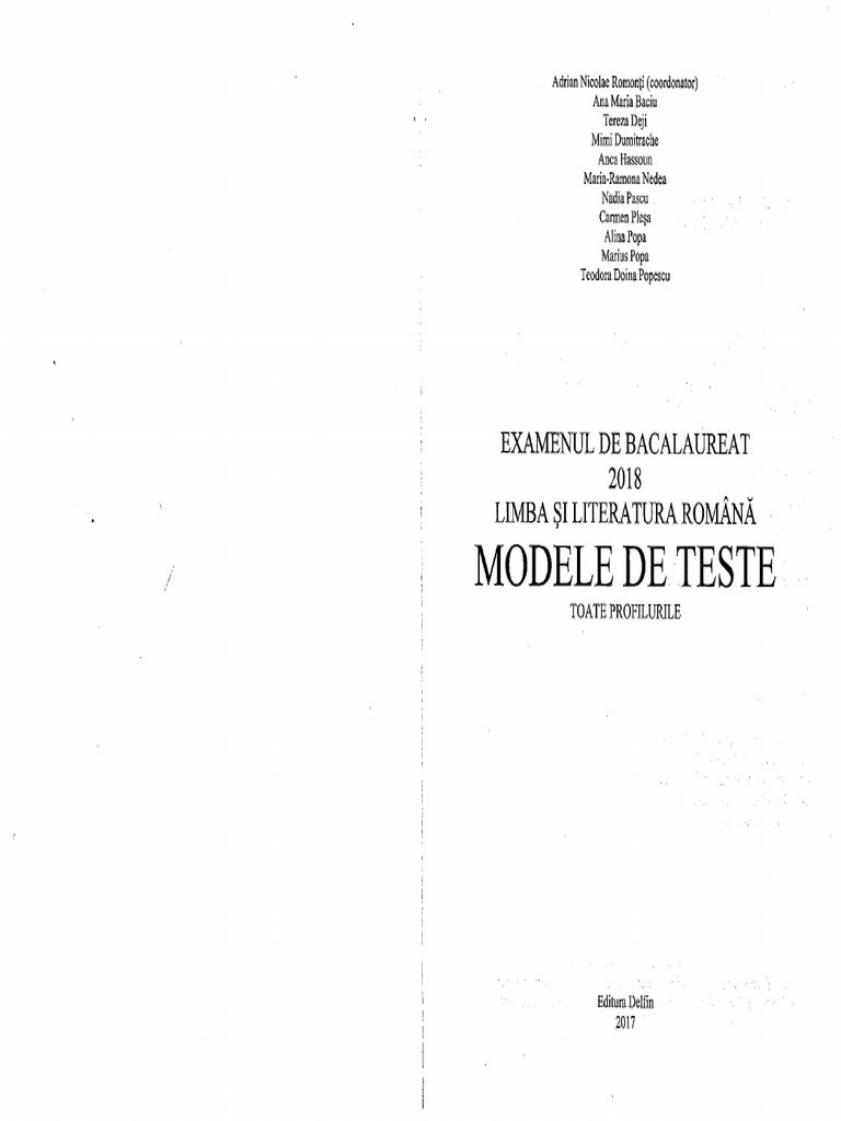 Bacalaureat 2018 Limba Si Literatura Romana Profil Real Profil Uman 30 De Modele De Subiecte Si Sugestii De Rezolvare Pentru Pregatirea Simularii La Clasa A Xi A