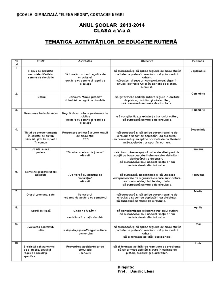Exemplu De Planificare Educatie Rutiera Elena29 29 05 2018