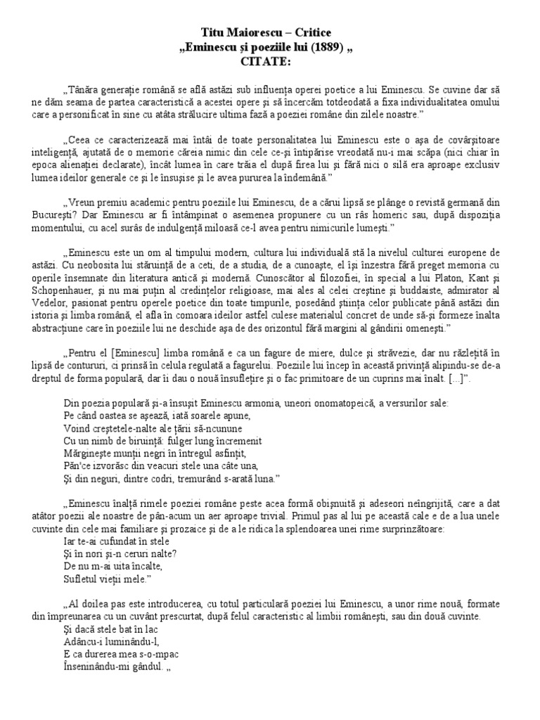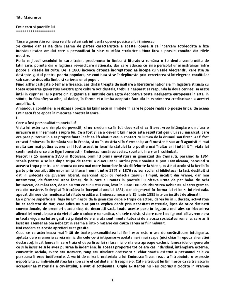 Referat Titu Maiorescu Eminescu Si Poeziile Lui 334612 Graduo