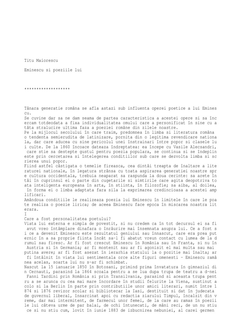 Eminescu Si Poeziile Lui Titu Maiorescu