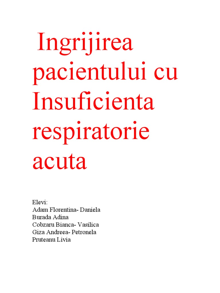 Ingrijirea Pacientului Cu Insuficienta Respiratorie Ingrijirea Pacientului Cu Insuficienta Respiratorie Acuta Acuta Doc