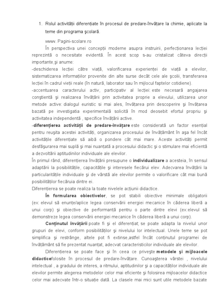 Rolul Activităţii Diferenţiate In Procesul De Predare