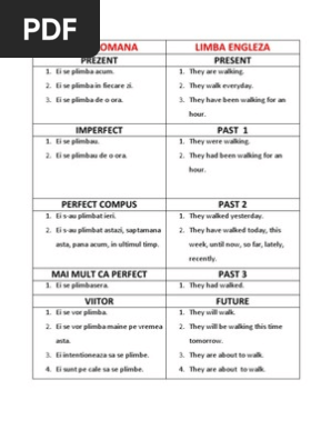 Timpurile Verbelor Prezentul Viitorul Imperfectul Perfectul Simplu Perfectul Compus Mai Mult Ca Perfectul