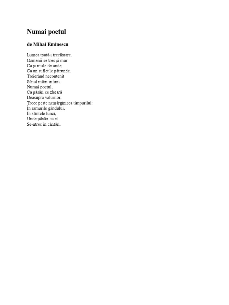 Fara Ei Nu Am Exista Numai Poetul Mihai Eminescu