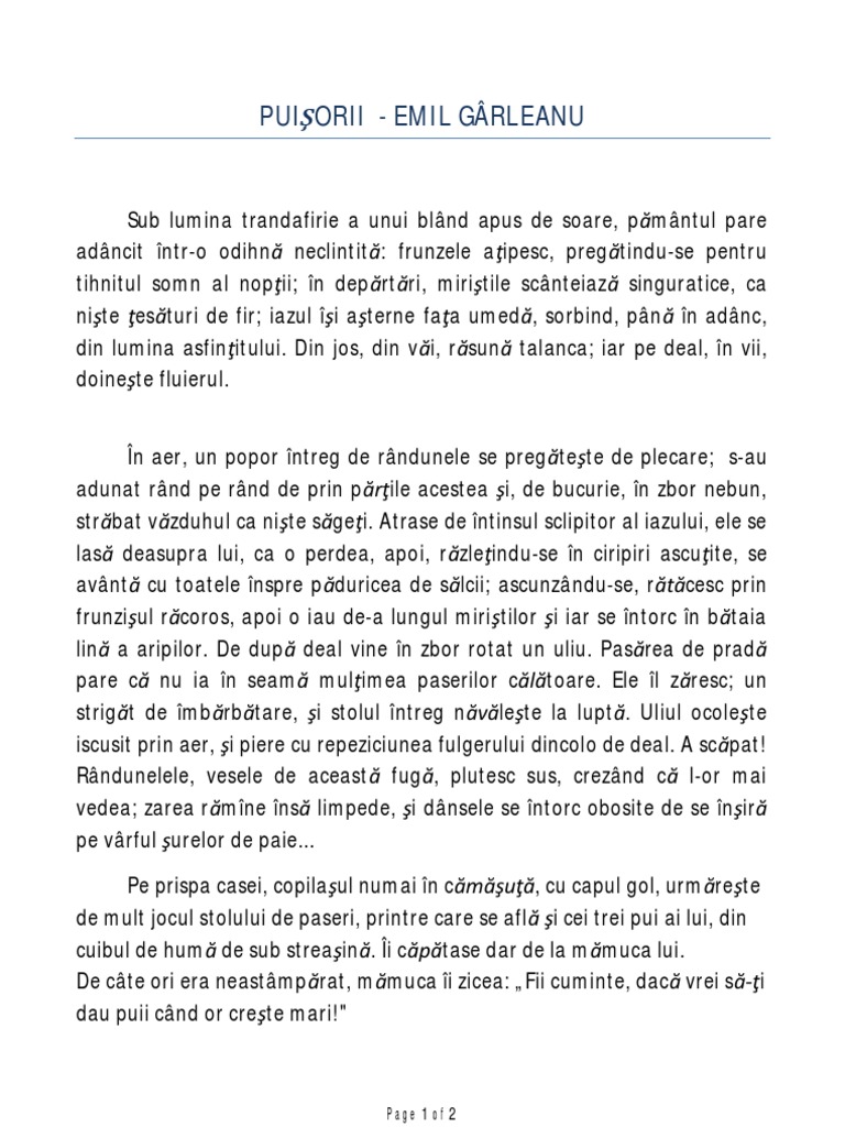 Puisorii De Emil Garleanu Anideșcoală Ro