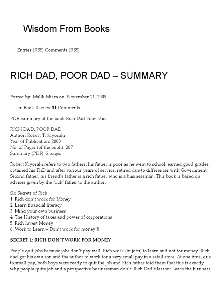 Rich Dad Poor Dad Pdf Book Summary By Robert Kiyosaki