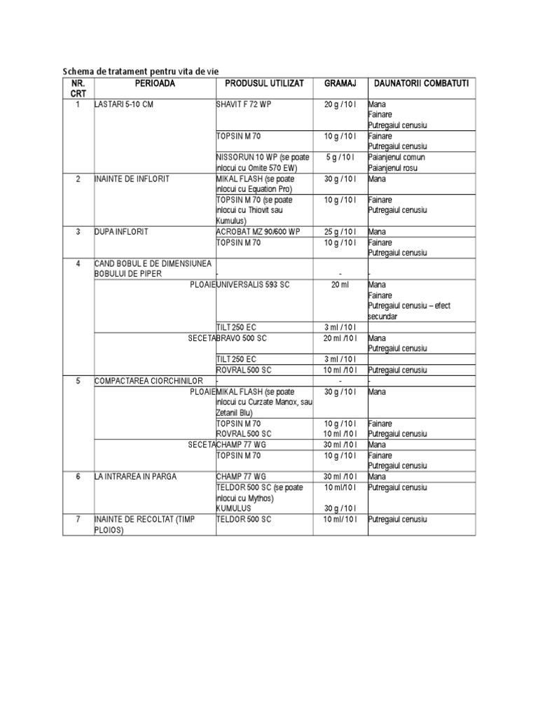Schemă Tratament Viţă De Vie Dupont Revista Ferma