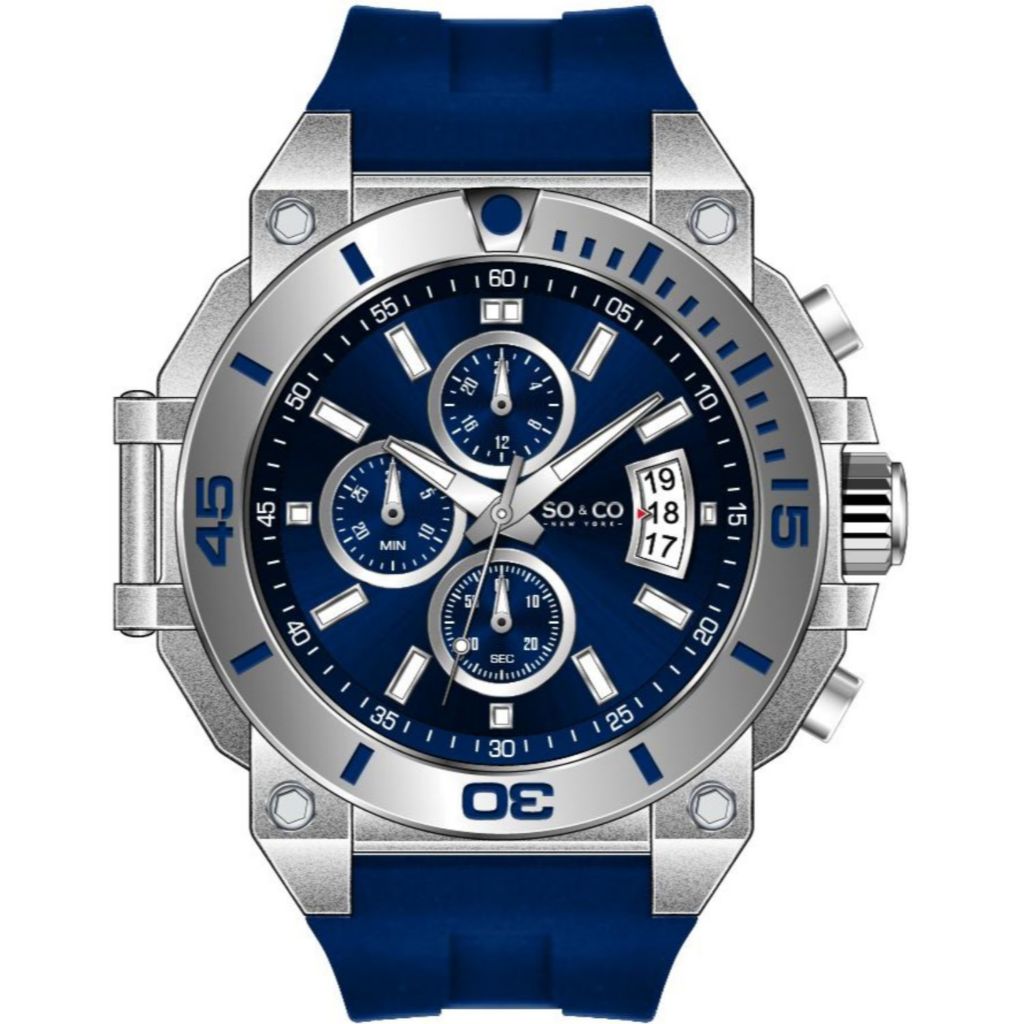 Amazon Com So Co New York Men S 5021 3 Yacht Club Stainless Steel Date Luminous Hands And Markers Blue And Black Unidirectional Bezel Stainless Steel Link Bracelet Watch Watches