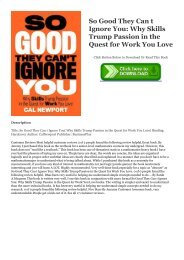 Pdf Download So Good They Can Amp 039 T Ignore You Why Skills Trump Passion In The Quest For Work You Love Full Pdf
