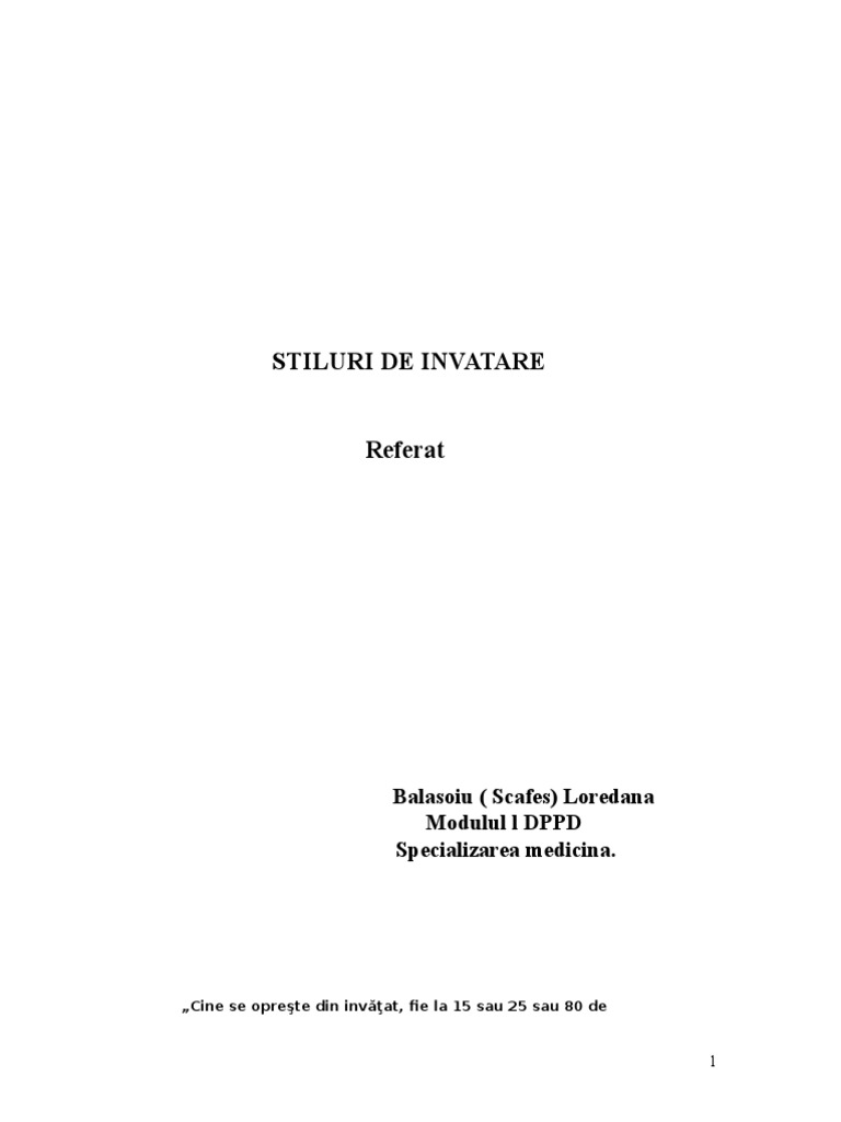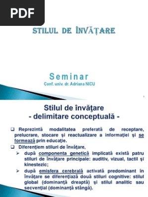 Referat Stiluri De Invatare Si Stiluri De Predare Psihopedagogie 240862