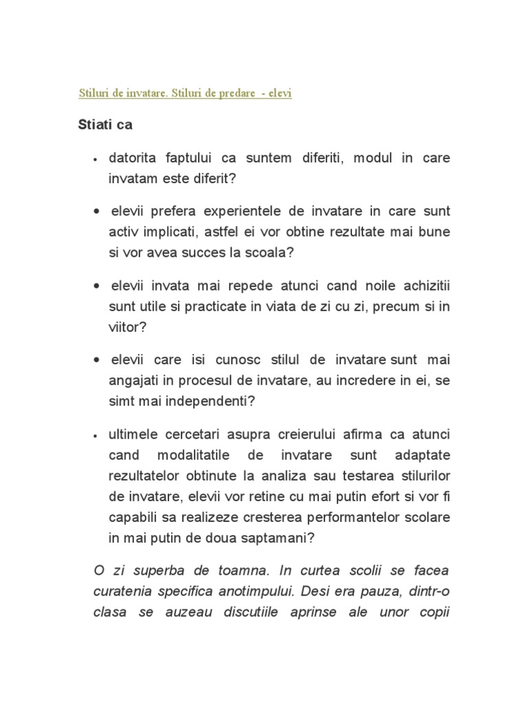 Referat Stiluri De Invatare Si Stiluri De Predare 443786 Graduo