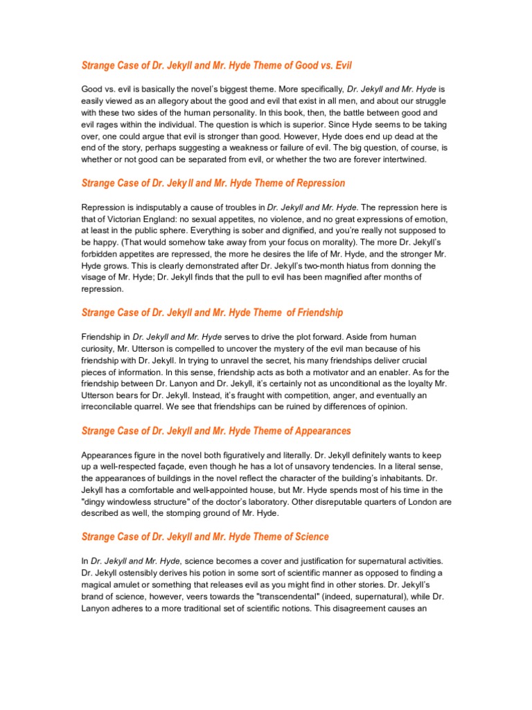 Dr Jekyll And Mr Hyde Themes Course Hero