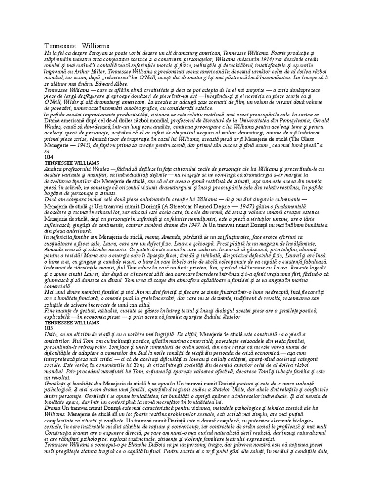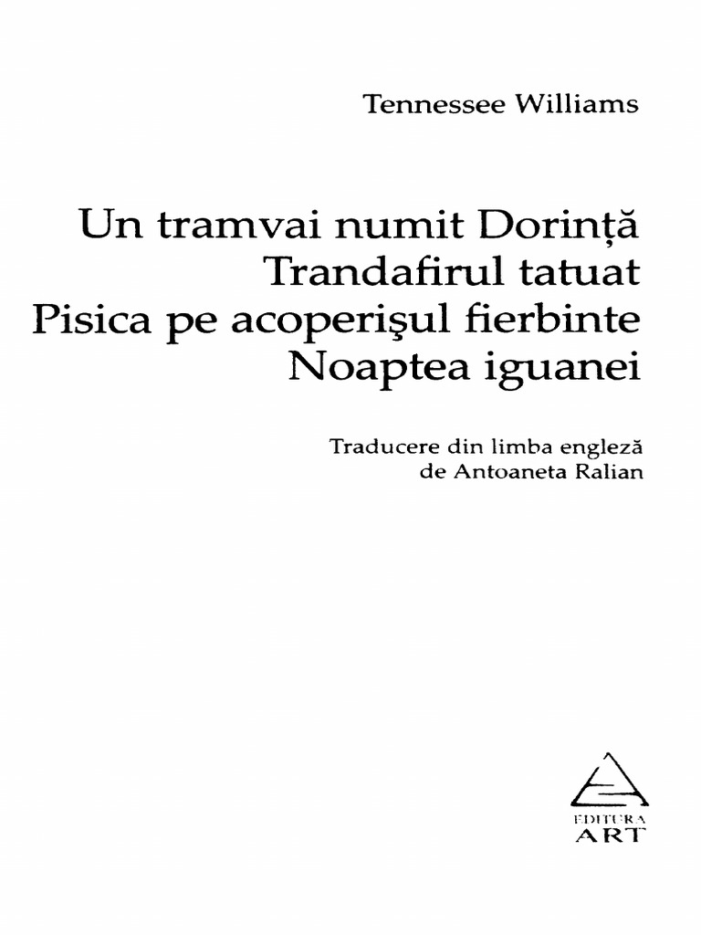 Un tramvai numit dorință engleză a streetcar named desire este un film american din 1951 o adaptare cinematografică a piesei omonime a dramaturgului american tennessee williams. Download view un tramvai numit dorinta tennessee williams as pdf for free. In acest moment cartea un tramvai numit dorinta tennessee williams poate fi gasita la libris ro unde costa doar foarte putin. V am lasat deschisa sectiunea comentarii in acest sens.